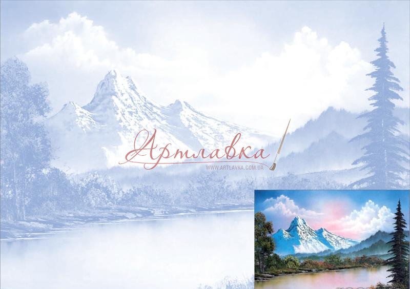 Полотно на картоні з ескізом, "Сніжні вершини", 30*40, бавовна, акрил