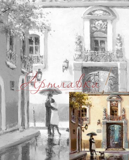 Полотно на картоні з ескізом, "Закохані під дощем", 30*40, бавовна, акрил