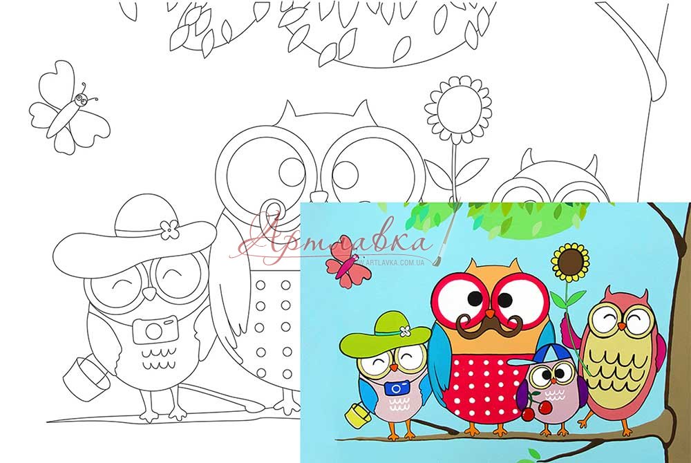 Головна › Полотно на картоні з контуром "Совина родина", 20*30см, бавовна
