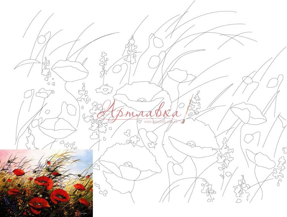 Полотно на картоні з контуром "Маки", 30*40см, бавовна