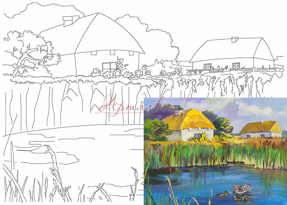 Головна › Полотно на картоні з контуром "Українське сіло", 30*40см, бавовна