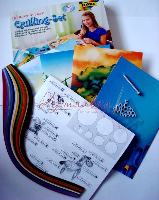 У продажі представлені готові набори для квілінгу, які включають усе необхідне для створення композиції.