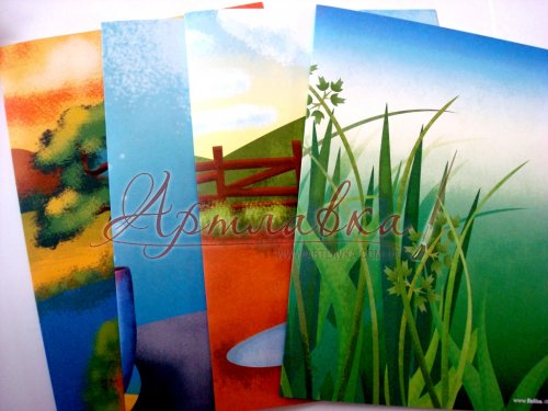 • Фонові підкладки. На них нанесений малюнок, який допоможе визначитися з обраною тематикою композиції. Розміри підкладки 21*29,4 см;