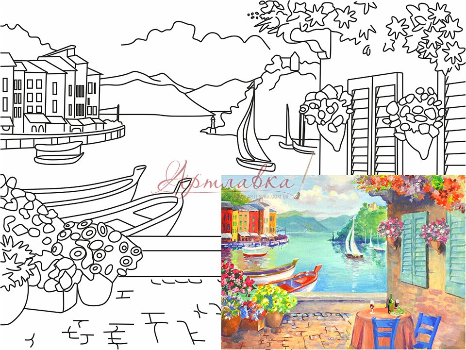 Полотно на картоні з контуром "Морські пейзажі №3", 30*40см, бавовна
