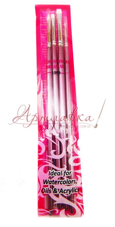 Набір пензлів для мініатюри "Pink", синтетика, 4 шт/уп