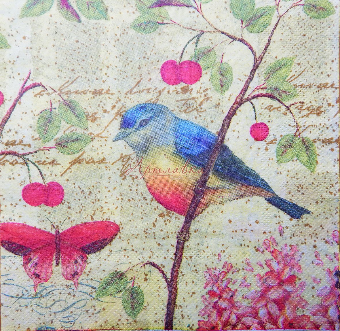 Головна › Декупажна серветка "Пташка в саду", 33*33см