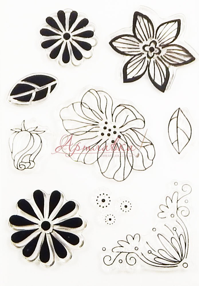 Набір силіконових штампів "Квіти №2", 15,5*10см