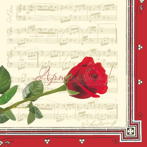 Головна › Декупажна серветка "Музична троянда", 33*33см