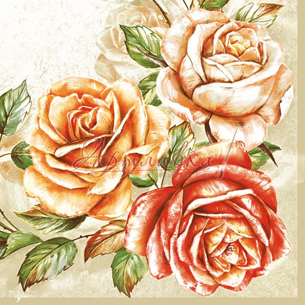 Головна › Декупажна серветка "Рози більші", 25*25см