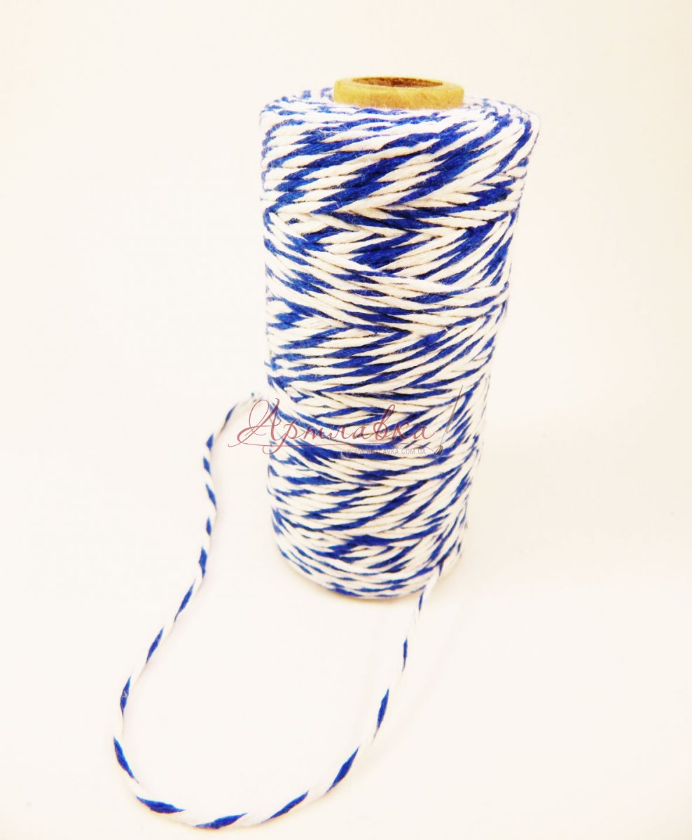 Шнур бавовняний, синій з білим, 1мм х 5м