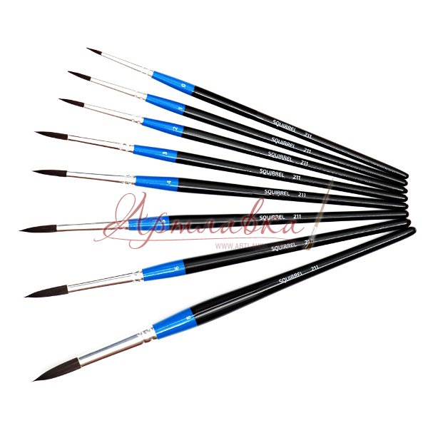 Пензель кругла з волосся білки №1- волосся білки м'яке, тонкий і еластичний, завдяки чому бездоганний контроль над плинністю фарби, і здатність утворювати гострий кінчик. Спектр застосування дуже величезний, робота з рідкими фарбами, такими як акварель, гуаш, розпис по фаянсу й порцеляні, клеї й багато чого іншого.
