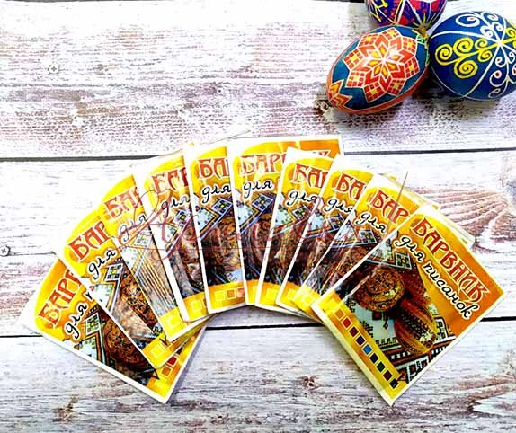 Барвник для писанок (фарба для писанки) - незамінний засіб при створенні класичної писанки. Для написання різнобарвних ліній за допомогою писачка з гарячим воском, яйце після нанесення частини ліній занурюють по черзі в барвник. Прийнято фарбувати яйце, починаючи від світлих выдтінків і поступово переходячи до більш темних. Барвник прекрасно перефарбовують кольори, попередньо нанесені на яйце.