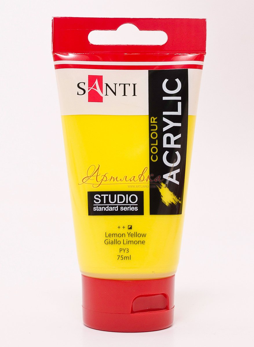 Головна › Акрилова фарба Лимонний жовтий, "Santi", 75 мл