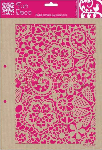 Трафарет багаторазового використання на клейовій основі, виготовлений із прозорого пластику. Маючи у своєму асортиментах інструментів такий предмет для декорування Ви зможете створювати різні візерунки на таких поверхнях, як дерево, вироби їх тканини, керамічні заготовки, фанера, пластик, скло, метав. Для нанесення зображення можна використовувати акрилові фарби, об'ємні пасти й гелі, шпаклівку й об'ємні фарби, а інструменти можна підібрати різні: пензлі, спонжі, мастихіни. Після використання інструменти й заготовки рекомендується відразу теплою водою промити . Після того, як висохне, прикріпите його на гладку поверхню (упакування для трафарету).