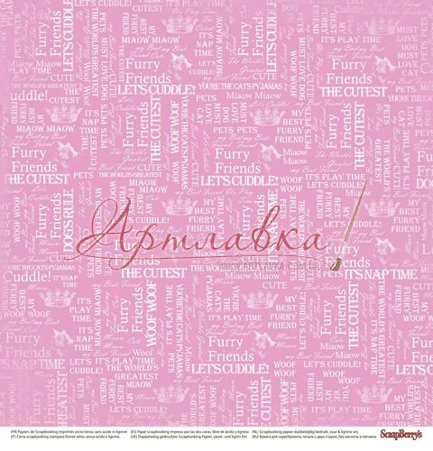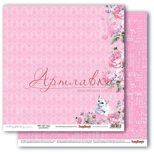 Папір для скрапбукінгу, двостороння, Шеббі котики, "Пухнатий друг" 30*30 см