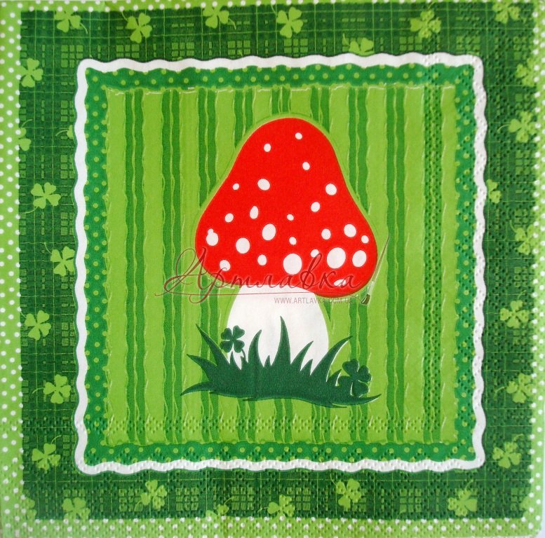 Головна › Декупажна серветка "Мухомор на зелені", 33*33см