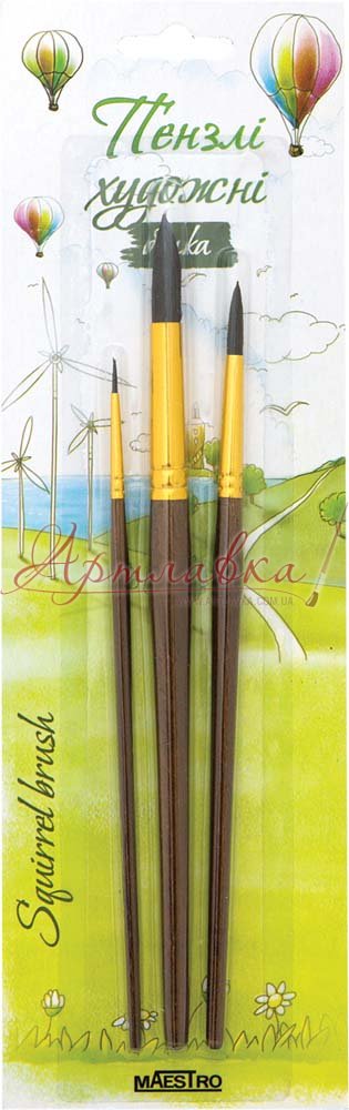 Набір круглих пензлів "Білка", 3шт/уп