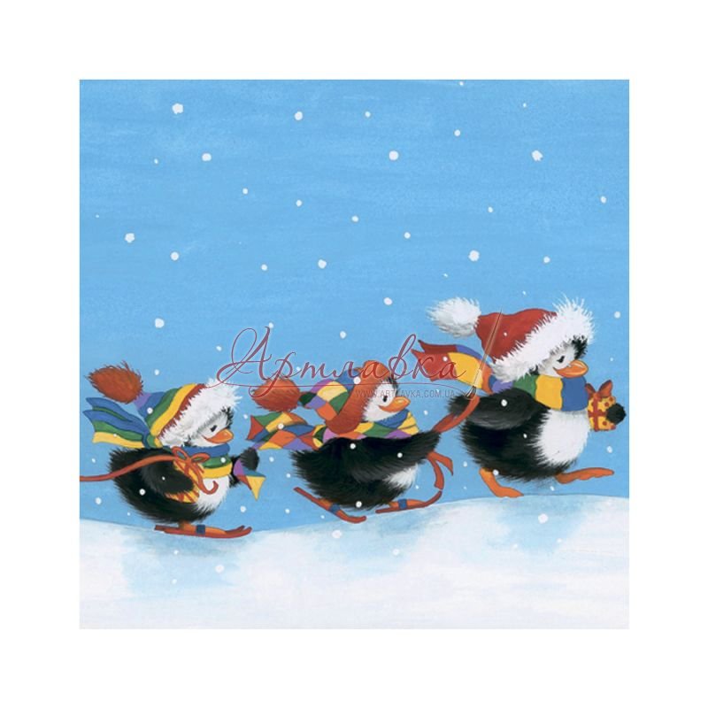 Декупажна серветка "Веселі пінгвіни", 33х33см