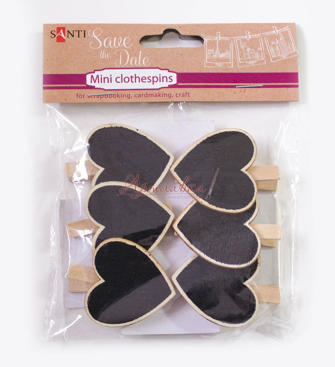 Дерев'яні прищіпки декоративні для фото й не тільки. На серденьках можна робити будь-які написи крейдою. Розмір: 4.5см, 6шт/уп