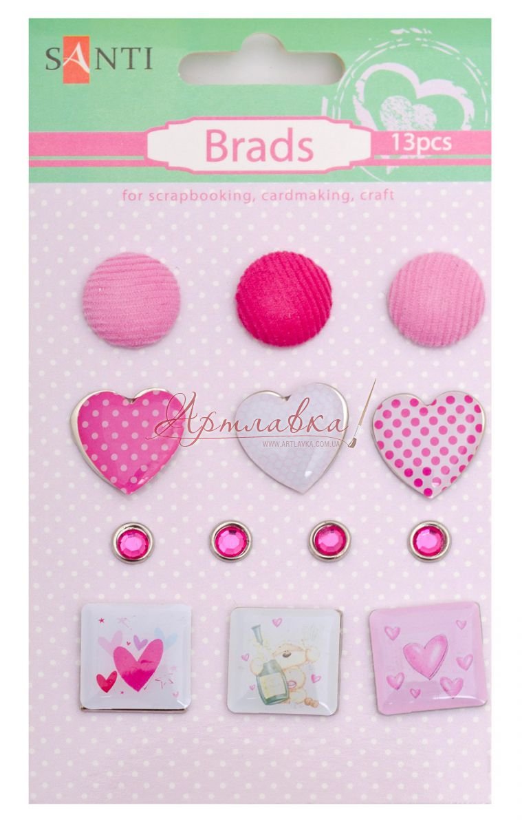 Брадси для скрапбукінгу "Серденька", 13 шт/уп