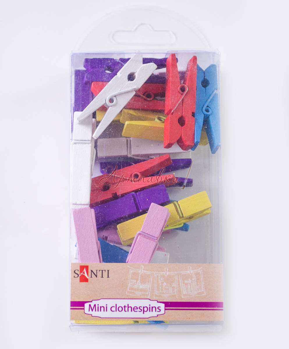 Декоративні дерев'яні прищіпки окаршенние в різні кольори. Підходять для фотосесій, декору, оформлення Дня народження дівчинок і хлопчиків, а також для оформлення оригінальних подарунків. В упакуванні 24 шт.