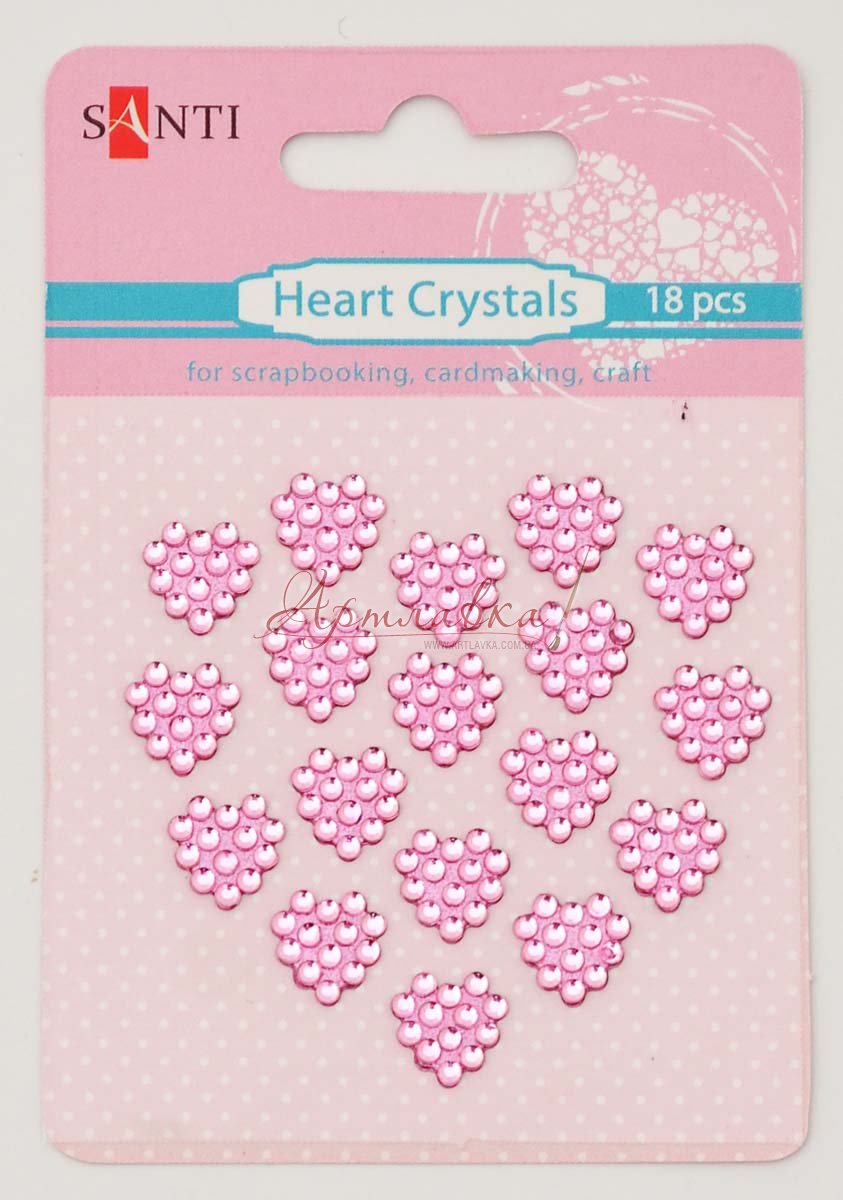 Кристали клейові "Серденька рожеві", 18шт/уп