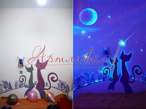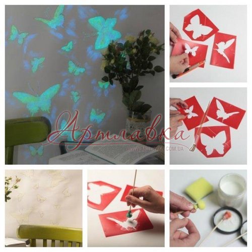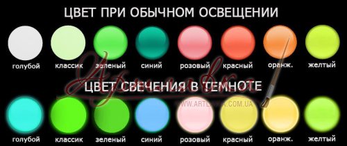 Прагнете зробити маленьке чарівництво просто, швидко й 100% красиво? Тоді Вам варто купити люмінесцентну прозору фарбу, яка світиться в темряві. З її промощью можна малювати будь-які малюнки на найпростіших виробах і тим самим перетворювати їх. При денному світлі їх не буде видне, а як тільки згаснуть усі світильники, виключаться лампи й стане темно - відразу Ваші малюнки оживуть і порадують своїм яскравим світлом. Принцип нагромадження світла від денного або штучного висвітлення. Уночі вистачає на 6-8 годин. Де купити світну фарбу ми знаємо: Київ, магазин АРТЛАВКА. Є набори, поштучно, а також усі необхідні інструменти для такої творчої справи - пензлика, спонжі й ін. Варто відзначити, що дана продукція зовсім безпечна, без заходу, ніяких обмежень для творчості дітям і дорослим. Витрата матеріалу: для нанесення 1 кулі – потрібно 20 мл на 0,2 м. кв.