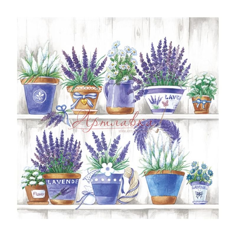 Декупажна серветка "Лаванда на поличках", 33*33см