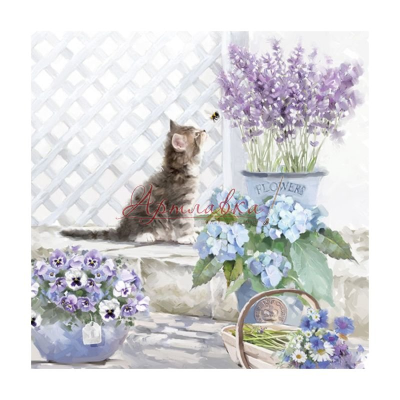 Головна › Декупажна серветка "Котик і квіти", 33*33см