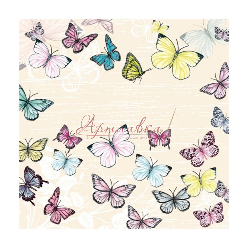 Головна › Декупажна серветка "Маленькі метелики, крем. тло", 33*33см