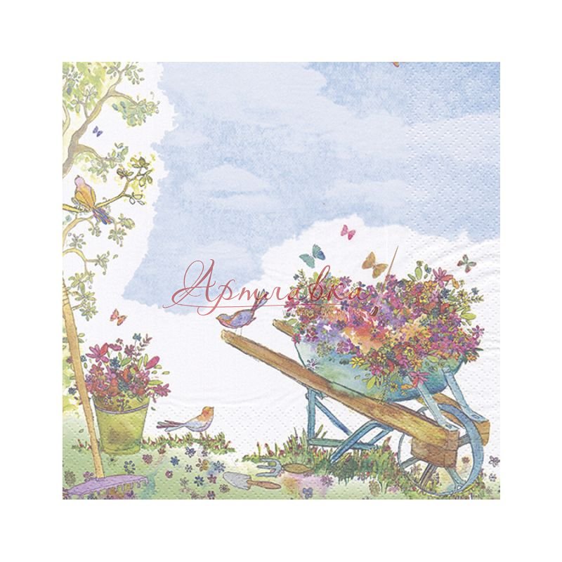 Головна › Декупажна серветка "Візок із квітами", 33*33см