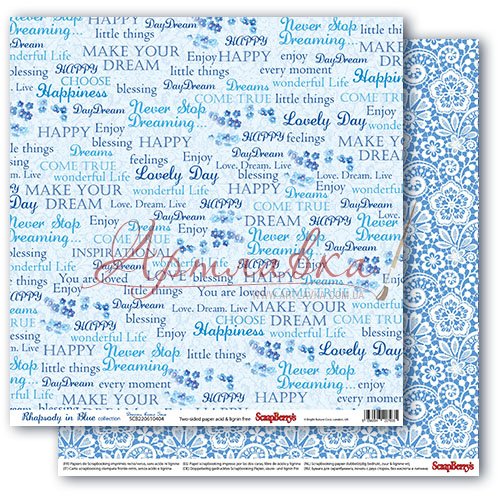 Папір для скрапбукінгу двостороння, Сапфірові мрії "Мереживо", 30*30 см