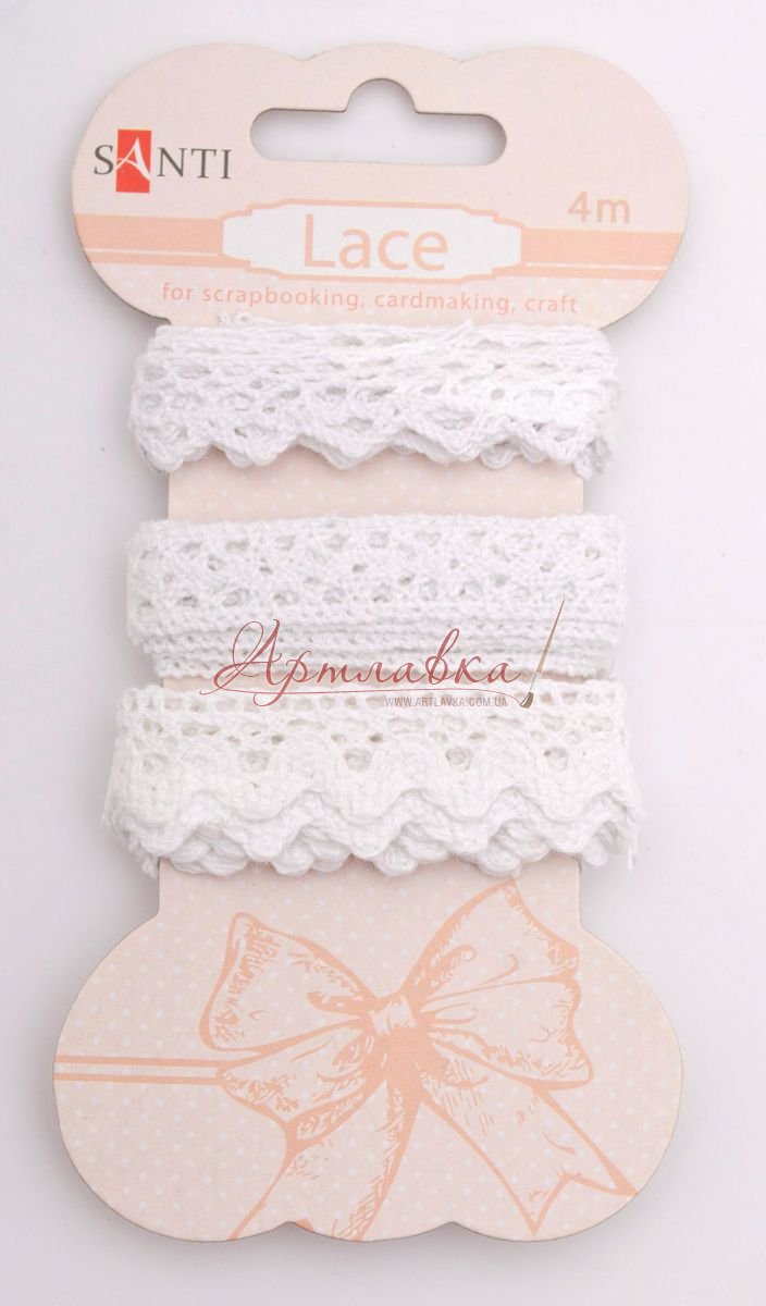 Набір білих мереживних стрічок 4м, ширина: 1,5см, 1,3см, 1,1см