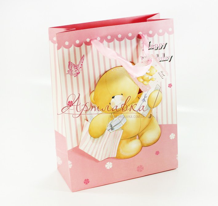 Головна › Подарунковий пакет 3D "Ведмедик з подарунками дівчинці", 24х18х8см