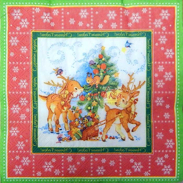Головна › Декупажна серветка "Рождественські оленята", 33*33см