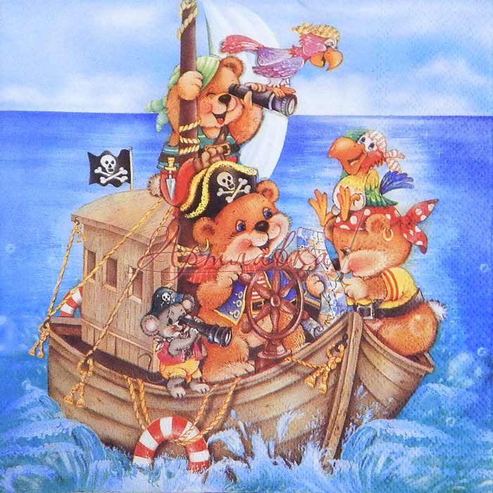 Декупажна серветка "Ведмедика пірати", 33*33см