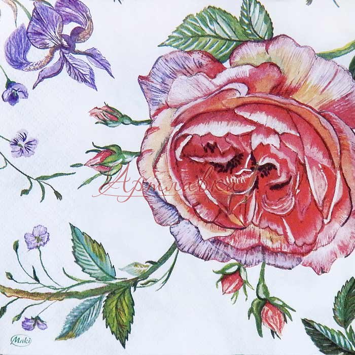 Головна › Декупажна серветка "Роза й ірис", 33*33см