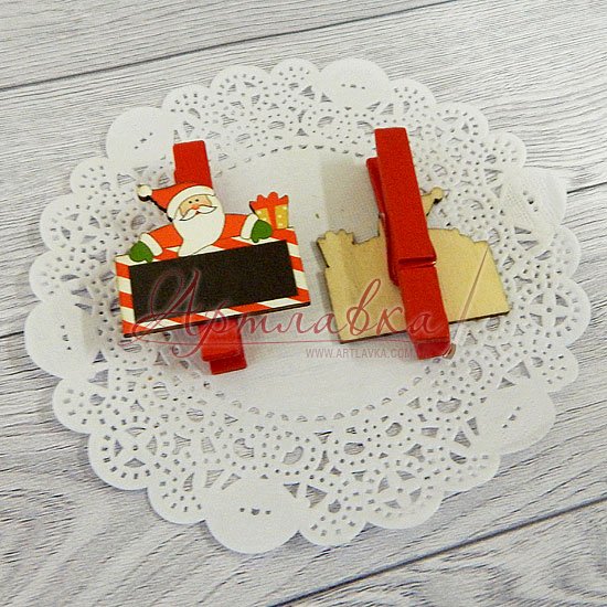Декоративні прищіпки з Дідом Морозом добре доповнять для новорічного й різдвяного декору будь-якого інтер'єру. Також прекрасно зморяться на flatlay розкладках. На Велов табличках можна наносити підписи й малюнки крейдовим маркером або крейдою.