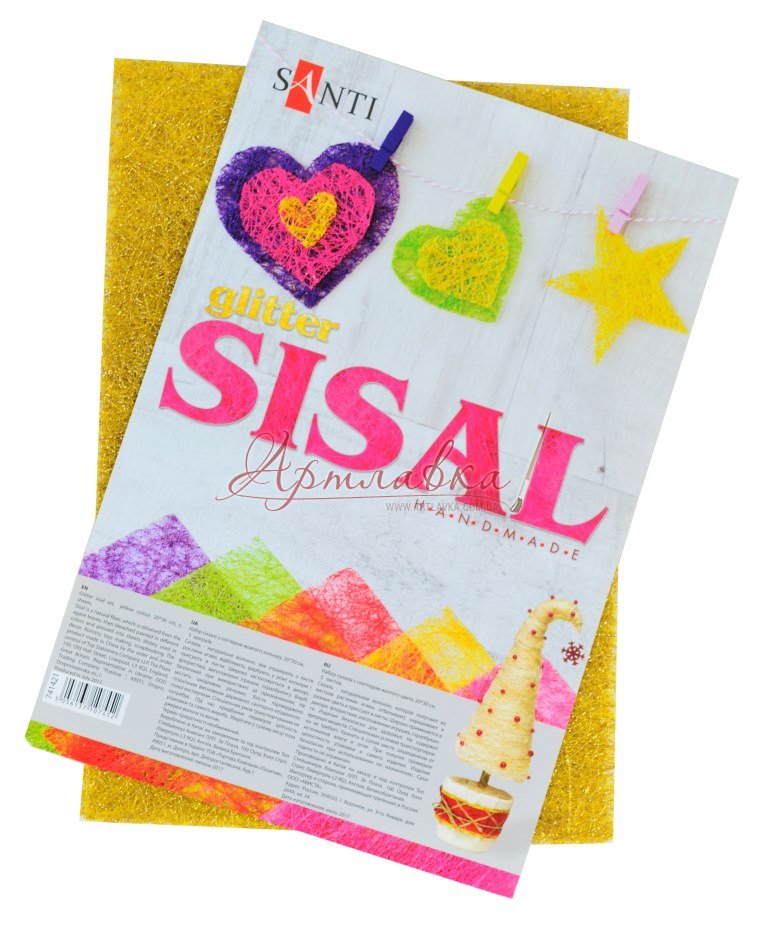 Сизаль із глітером листова, жовта, 20х30, 5л./наб.