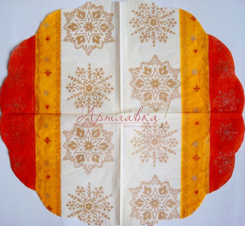 Головна › Декупажна серветка кругла"Сніжинки беж.", 33*33см