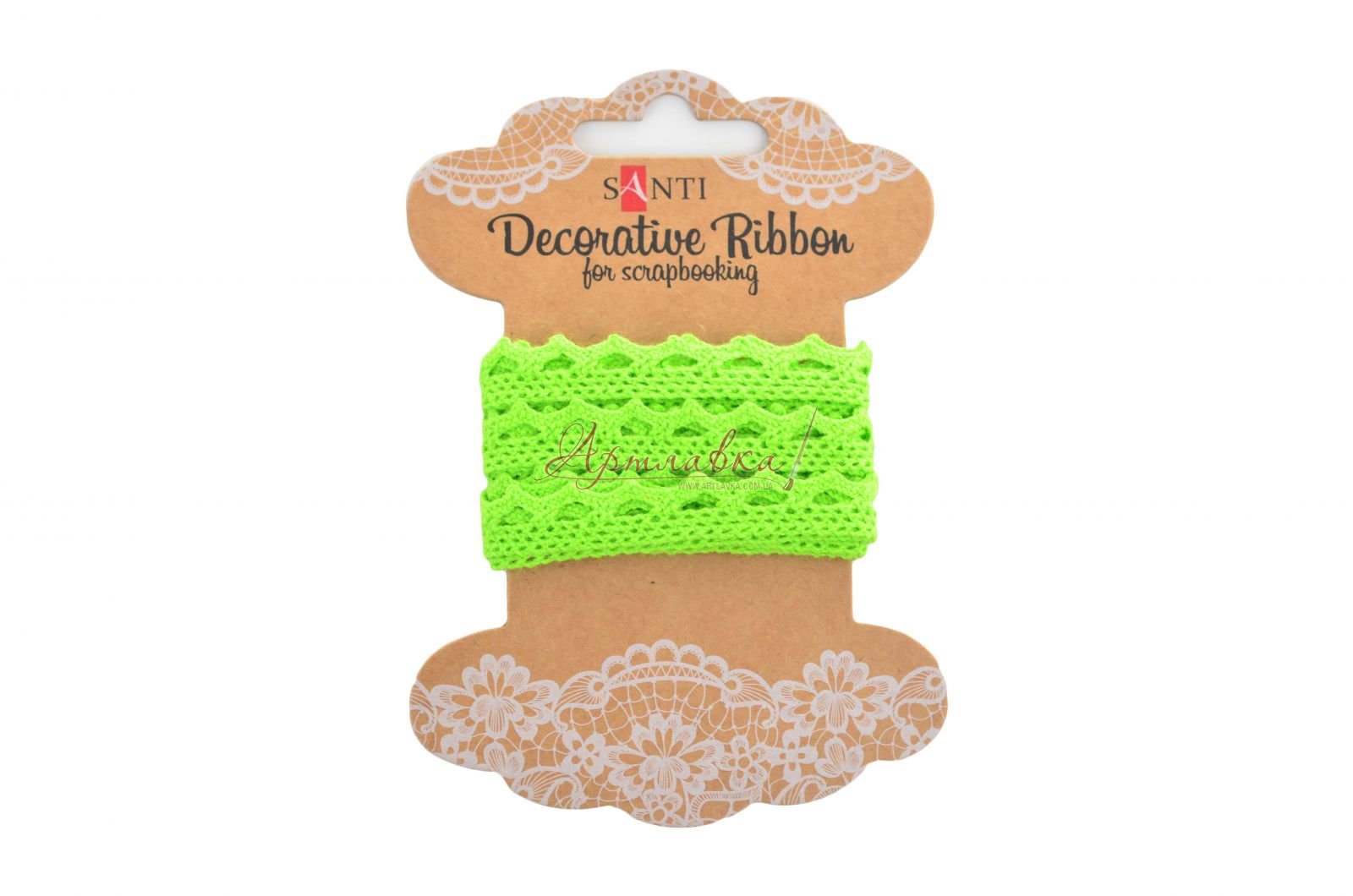 Мереживна стрічка салатова, 1 см*2м