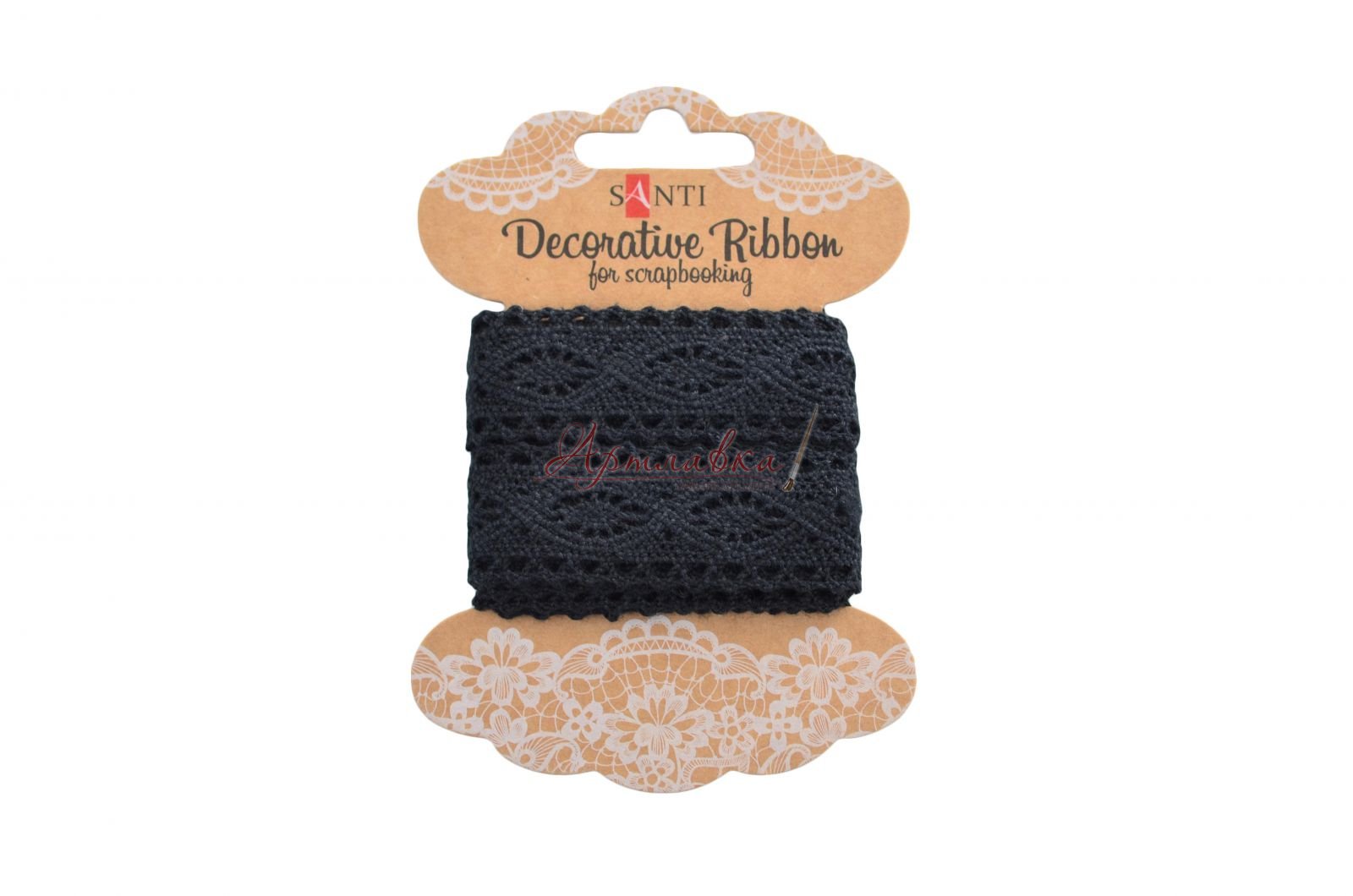 Мереживна чорна стрічка, бавовняна декоративна. Широка- 25 мм, на бобіні в намотуванні 2 метра. Широко використовують тих, хто елают листівок, альбоми в техніку скрапбукінгу, авторскіхе іграшки, дизайнерські сумочки, для прикраси й превтілення предметів одягу й різних виробів, створення затишного стилю.