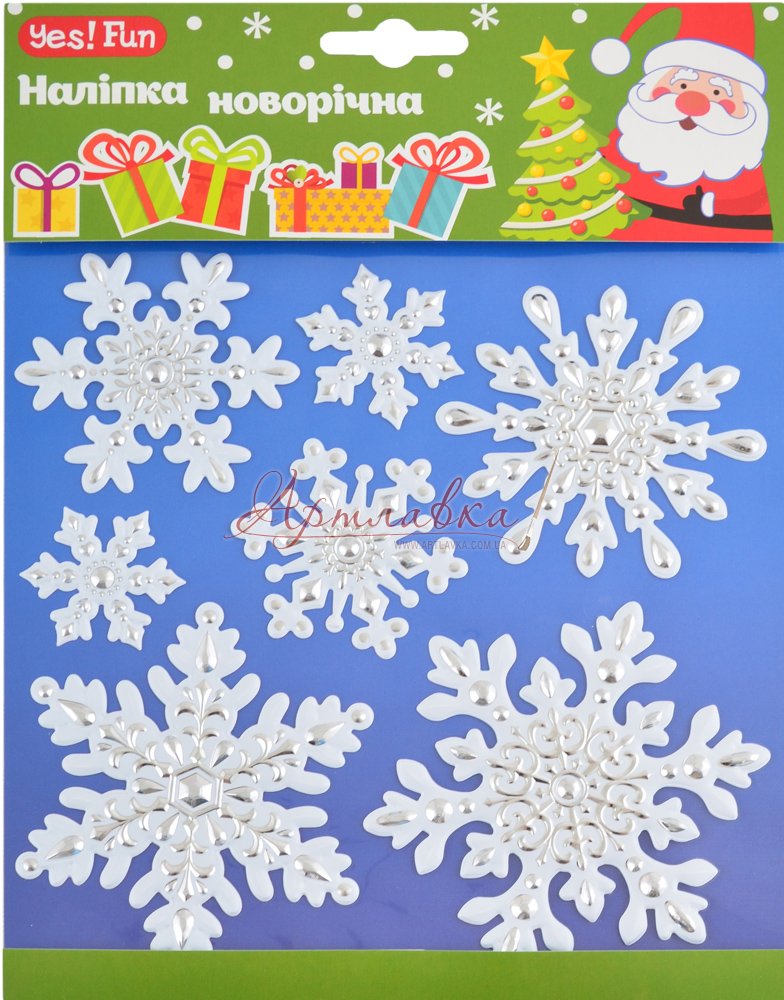 Новорічні наклейки у формі сніжинок, об'ємні, фольговані. Підходять для декору вікон, приміщень, декорування.