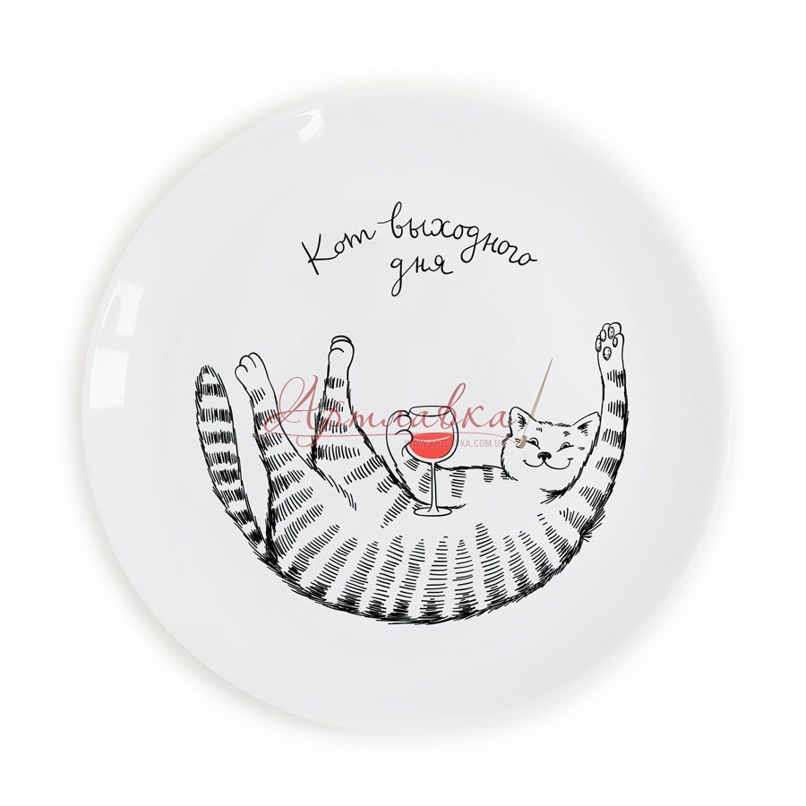Вихідний день повинен бути приємним і радісним. З такою тарілочкою із забавним котиком, настрій Ваше точне повинне бути відмінним. Подаруєте такий посуд близьким і насолоджуйтеся сніданками разом. 100% якісна склокераміка, оригінальний малюнок. Не мити в посудомийній машині. Не вигорає й не змивається. У подарунковому впакуванні