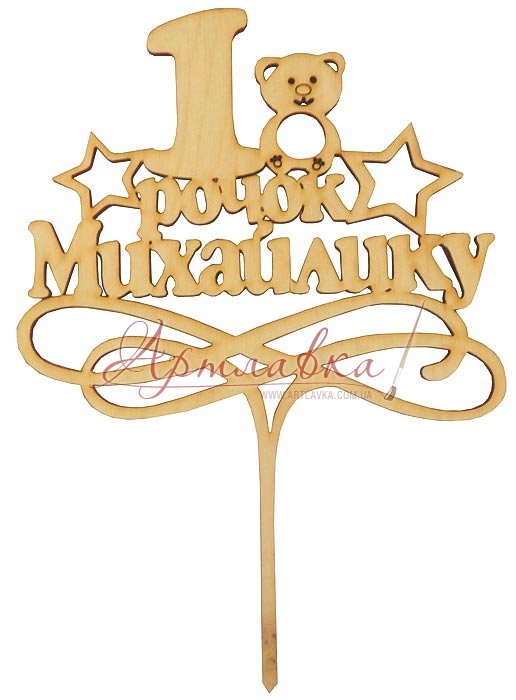Топпер "Ім'я під замовлення з ведмедиком", фанера, 15х15см
