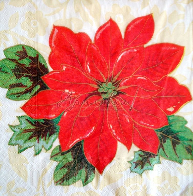 Головна › Декупажна серветка "Пуансеттия більша",33*33см