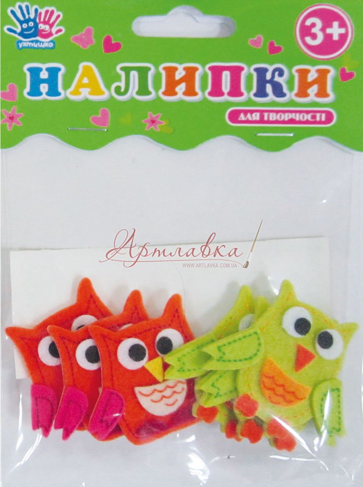 Наклейки для творчості "Сови №2" повсть, 6шт/уп