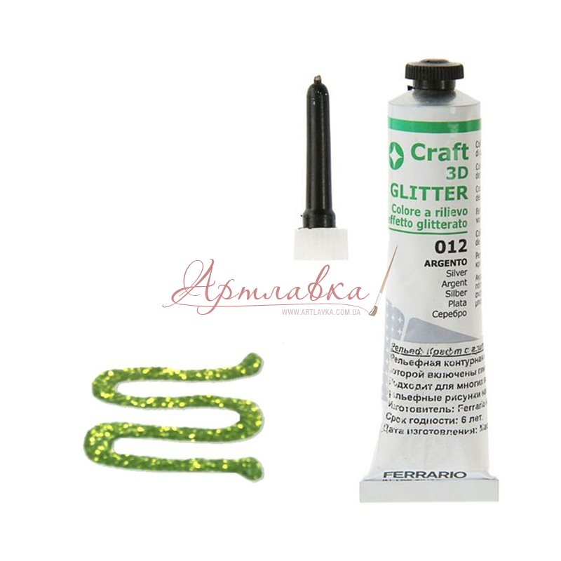 Контур рельєфний із блискітками Ferrario Craft Rilievo Glitter, 20 мл, Шартрез