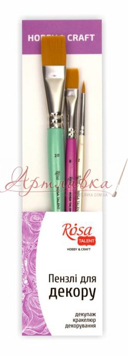 Чудовий набір пензлів для ґрунтування, нанесення фарби, стійкий під впливом клею й лаку. Пензлі мають м'яке волосся.