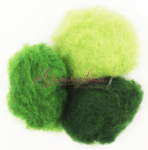 Набір вовни для валяння "Зелені відтінки", кардочес, 3х10г